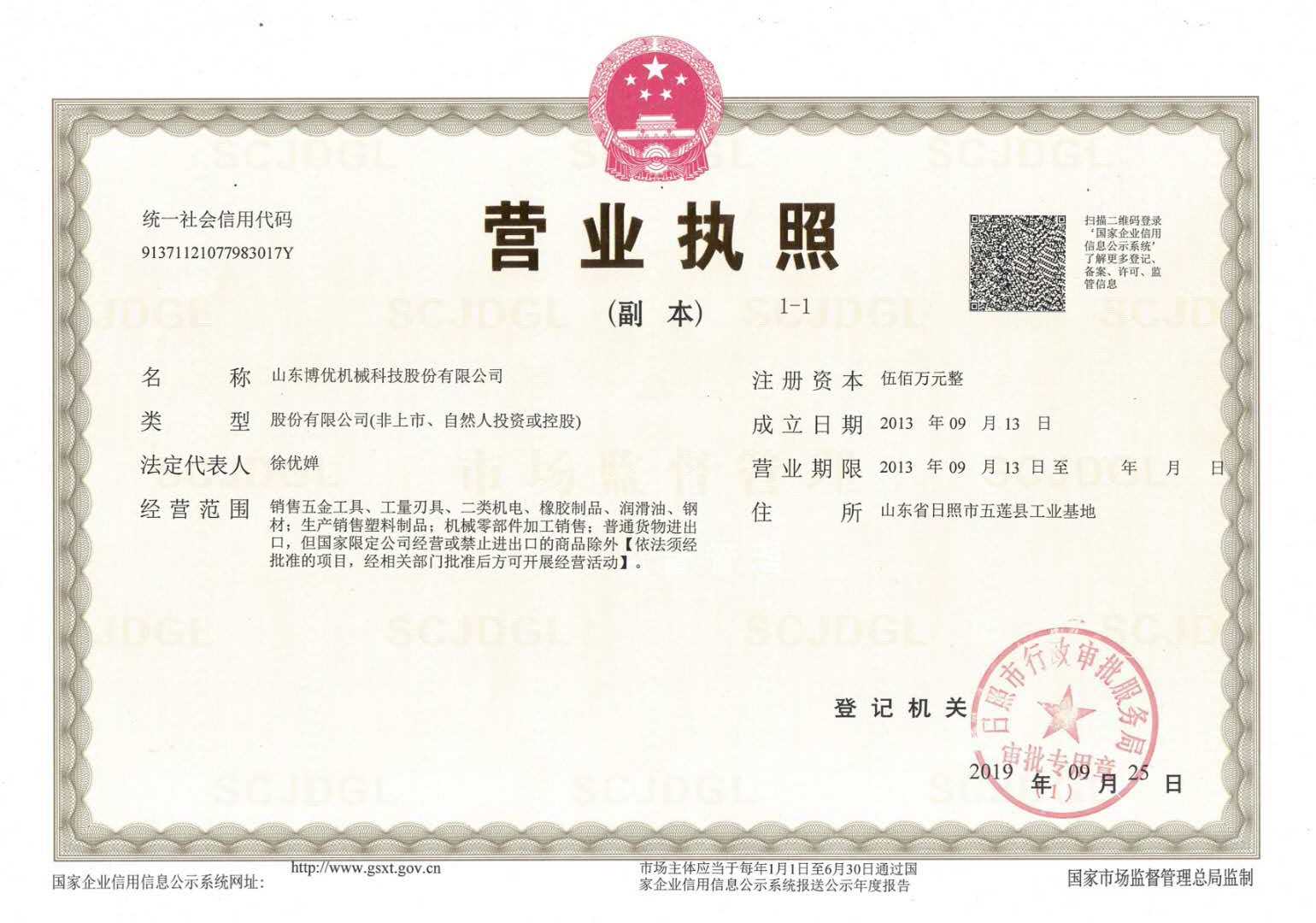 2017年1月公司重新注冊為山東博優(yōu)機(jī)械科技股份有限公司,公司占地20畝,